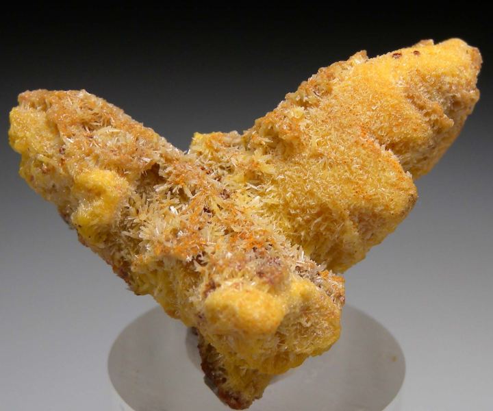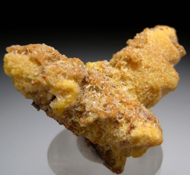 Fine example of the rare replacement of Mimetite after Cerussite from Tsumeb. This is an excellent old-time, rarely seen specimen from this famous mine showing the well preserved form of the original Cerussite crystals now replaced by small yellow Mimetite crystals. Well formed and complete all around. This is from the choice Tsumeb collection of Carl Acosta, then to the collection of Ben Schumer.Data last checked on 25th Feb 2026