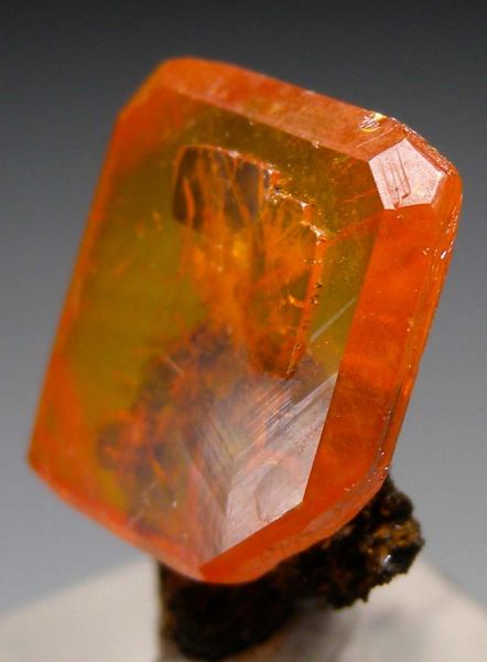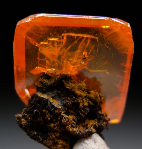 Perfect 'window pane' crystal of Wulfenite from a 2025 find at the mine. The crystal is perched on a small amount of matrix allowing for development of all 4 crystal edges. The Wulfenite is 1.6cm on the diagonal.Data last checked on 28th Feb 2026