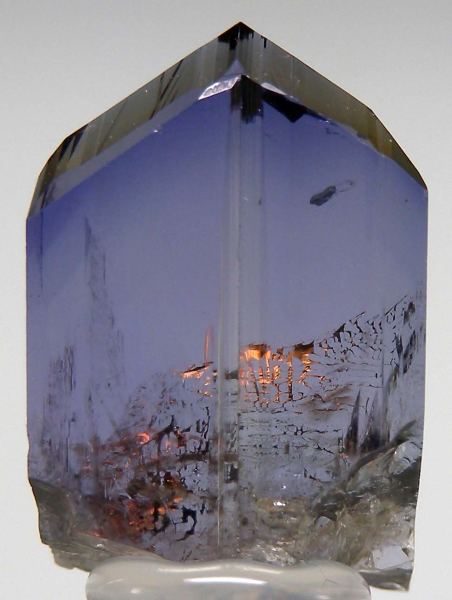 Highly transparent single blue Tanzanite crystal with uniform shape and glassy luster. Well crystallized all around and undamaged. All four sides shown. Natural, unheated Tanzanite.Data last checked on 28th Feb 2026