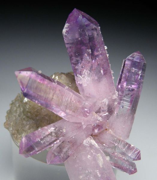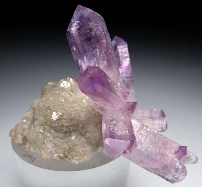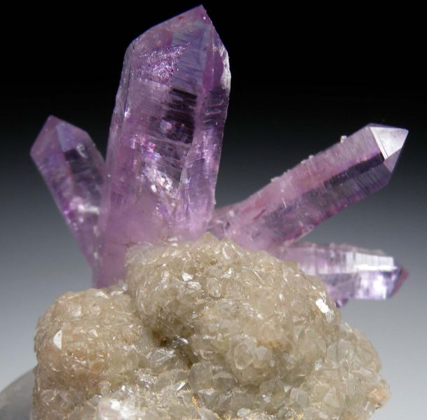 Columnar Calcite Spray on Amethyst from Brazil