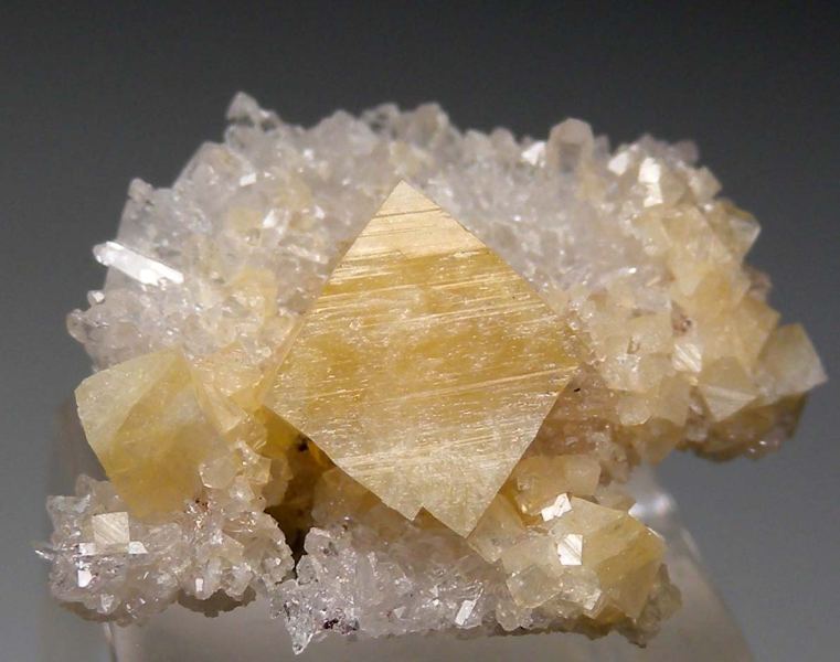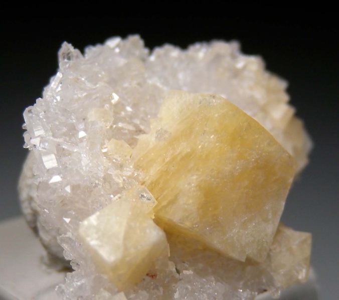 Outstanding large Woodhouseite crystal on Quartz matrix. The crystal is yellow/tan in color and 9mm in size. Thick and robust fine quality crystal associated with additional smaller crystals. Superb thumbnail for the species!!Data last checked on 4th Mar 2026