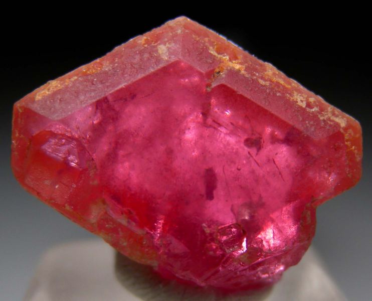 Translucent to transparent Pezzottaite crystal with rich raspberry color. Flat front face with a bevelled edge. Old stock from the original finds.Data last checked on 4th Mar 2026