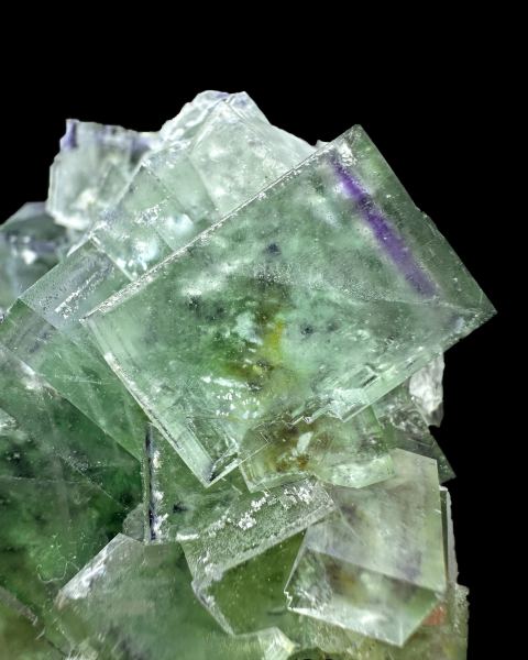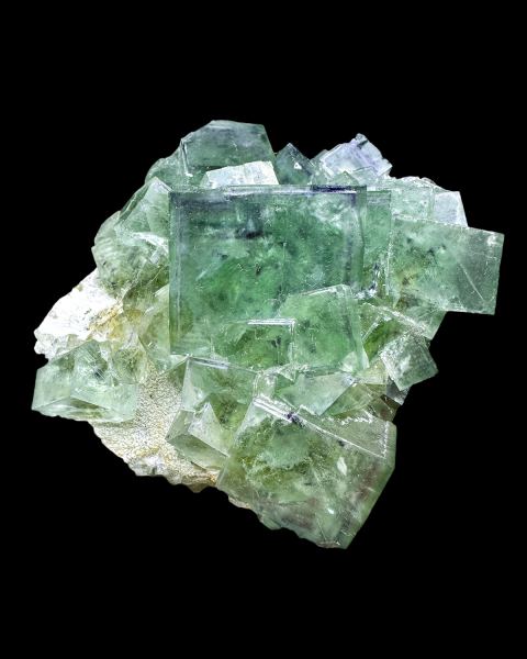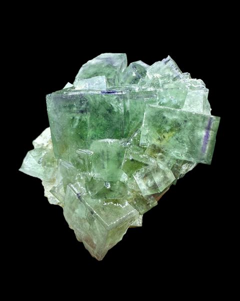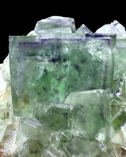 Aesthetic specimen of translucent and lustrous fluorite crystals with cool phantoms and color zoning, partly coated by quartz. Fluorescent under UV light.Data last checked on 4th Mar 2026 - specimen may no longer be available