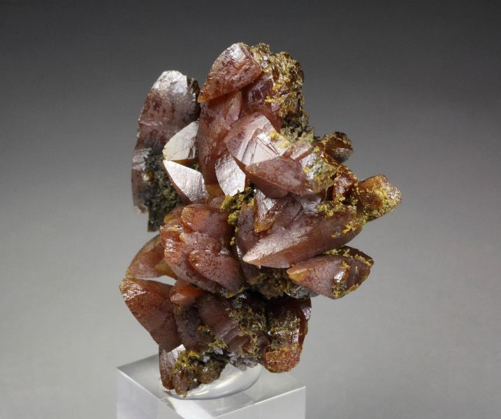 A wonderful specimen of orange wulfenite crystals from Erupcion Mine, Los Lamentos Mts, Mexico. It features scalenohedral crystals with intense orange-brown color. They are sharp, waxy lustrous and with a fresh appearance. In very good condition – some small nicks. On acrylic base., Fascinating!, Data last checked on 12th Mar 2026