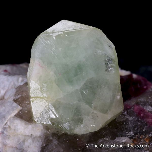 This is a Rhodizite on Elbaite Tourmaline, Smoky Quartz, and Microcline from Ampasogona pegmatite, Tetezantsio-Andoabatokely Pegmatite Field, Andrembesoa, Betafo Dist., Vakinankaratra, Madagascar. An excellent rhodizite crystal on matrix from Madagascar from the one major discovery of such large, refined crystals on this style of matrix.Data last checked on 12th Mar 2026 - specimen may no longer be available