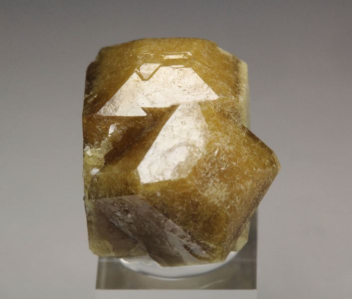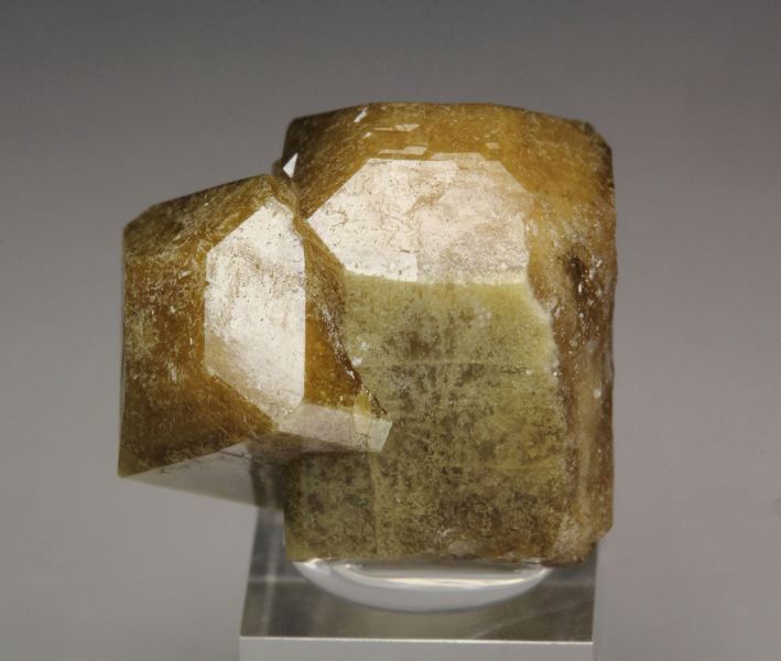 Not so often seen now vesuvianite specimen from Sierra de Cruces, Coahuila Mexico. The crystals are very sharp, prismatic and the main is doubly terminated. They are lustrous with charming tan-yellow color. Complete all over 360 degree. In excellent condition. On acrylic base., Pleasing Mexican vesuvianite!, Data last checked on 14th Mar 2026