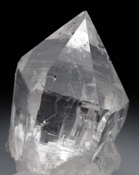 Gorgeous, stout Quartz crystal rising vertically from smaller crystals that adorn the base. Selected from tables of hundreds of crystals, this cluster immediately stood out as 'the one'. It's amazingly colorless and internally near-flawless. Complete all around and undamaged. Much more bright and glassy than the photos!Data last checked on 16th Mar 2026