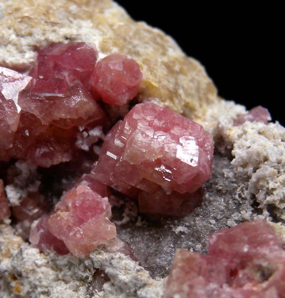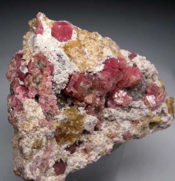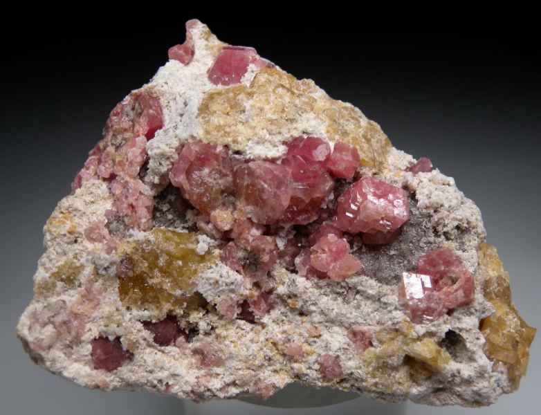Pink Grossular crystals with brown Vesuvianite. There are some damaged crystals but also many good ones, including a well exposed, undamaged 1cm crystal.Data last checked on 18th Mar 2026 - specimen may no longer be available