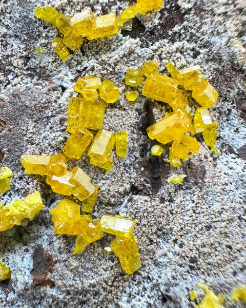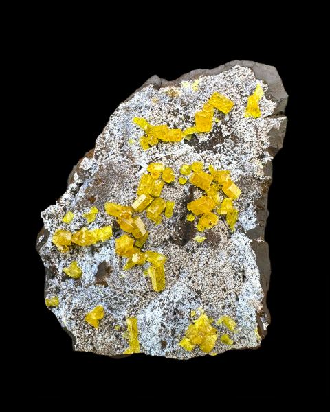 Specimen of lustrous, bright orange gemmy mimetite crystals on contrastive matrix. Great color and luster. ; HERE you can read our article about this discovery.Data last checked on 19th Mar 2026 - specimen may no longer be available