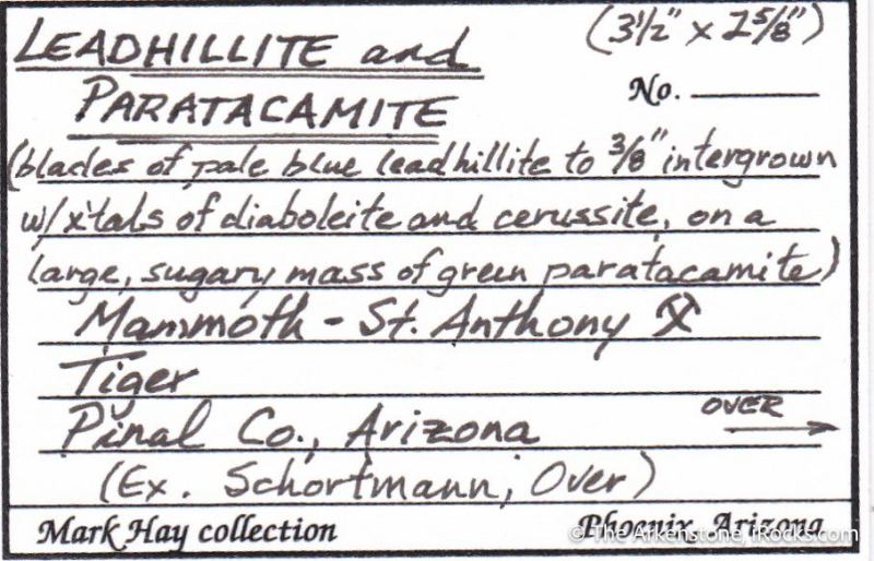 This is a Leadhillite with Paratacamite, Cerussite, and Diaboleite from Mammoth-Saint Anthony Mine, Tiger, Pinal Co., Arizona, USA. This is a significant and large, complex combination specimen from the Mammoth-Saint Anthony Mine with a variety of mineral species and textures!Data last checked on 20th Mar 2026
