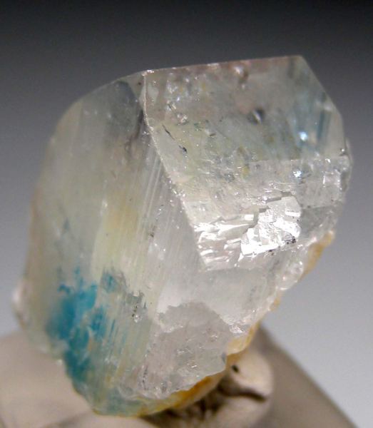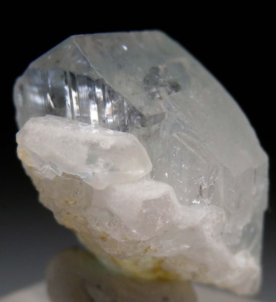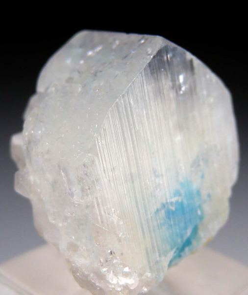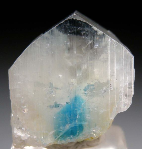 Single Euclase crystal with small Quartz crystals attached to the back. The Euclase has the typical central blue zone characteristic for this locality. Undamaged crystal that gets very transparent at the top. A highly aesthetic and uncommon thumbnail.Data last checked on 24th Mar 2026