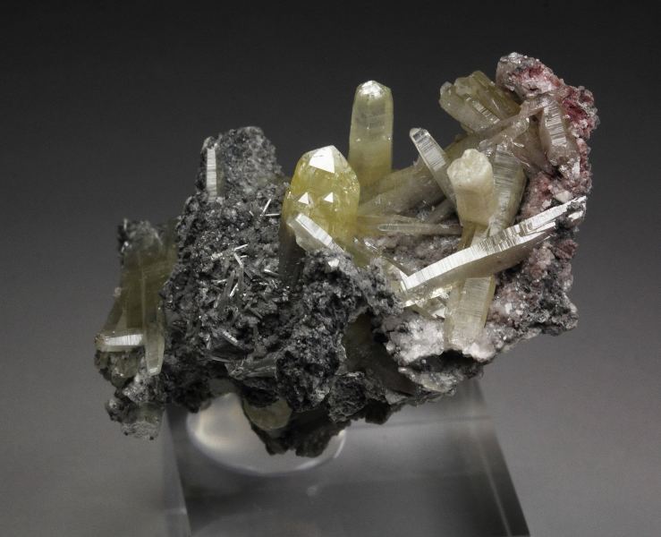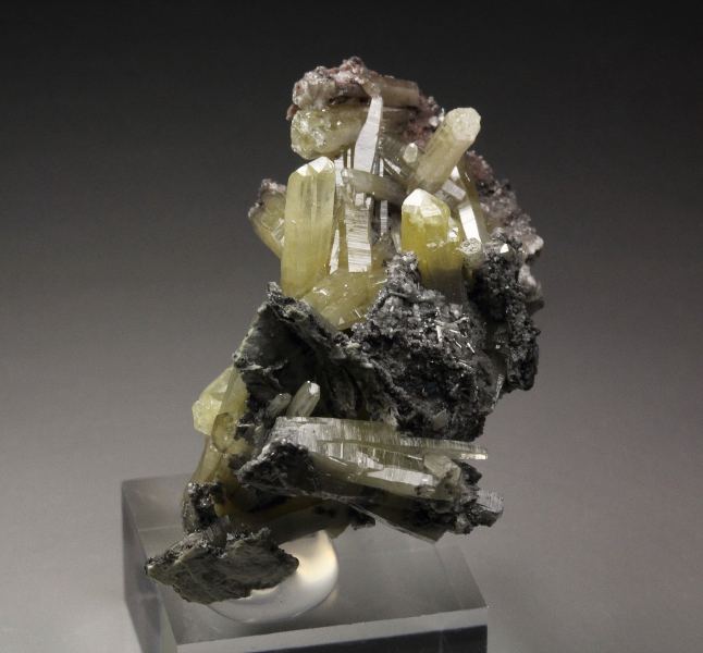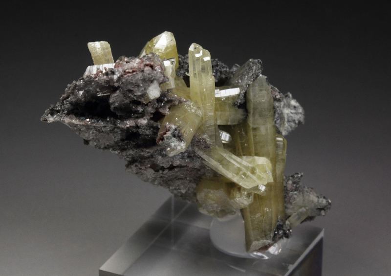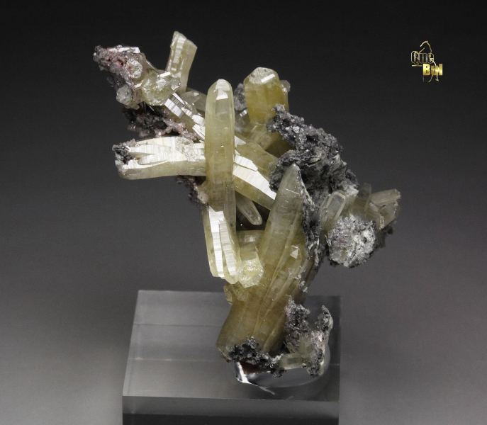 A gorgeous specimen of gemmy mimetite crystals from the famous Tsumeb mine, Namibia. It displays a sculptural cluster of crystals growing on a small base. They are sharp, prismatic with pleasing yellow color. The crystals have superb luster and fresh appearance. They are from translucent to transparent and gem. In very good condition - some natural contacts. On acrylic base., Astonishing!, Data last checked on 25th Mar 2026