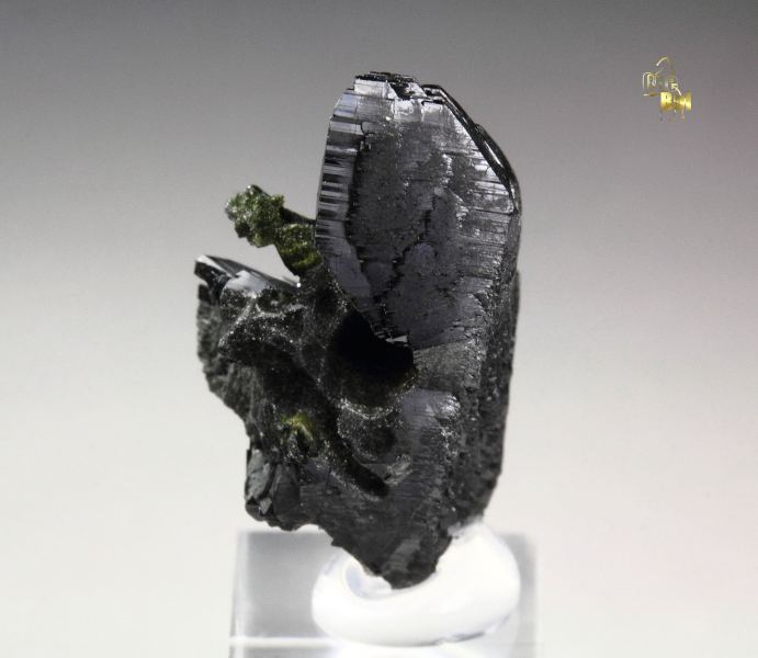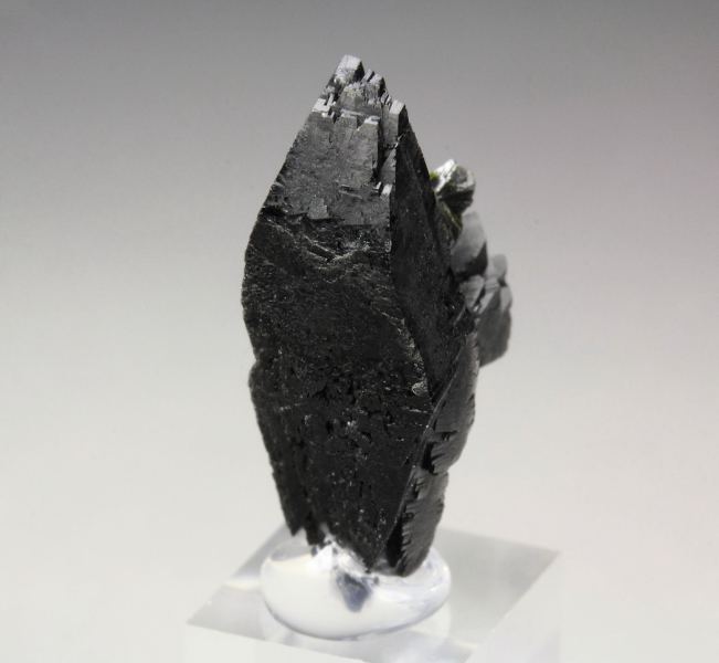 A fine babingtonite crystal from Roncari Quarry, Hartford County, Connecticut, USA. It comes from the collection of the famous mineral painter Frederick C. Wilda, USA - no label. The babingtonite crystal is very well shaped and sharp with black color. It displays attractively all over 360 degree. In excellent condition. On acrylic base., Superb!Data last checked on 27th Mar 2026