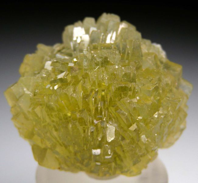 Glassy, translucent Prehnite crystals in a uniform, hemispherical formation. Beautiful crystals with bright lemon yellow color. The base is flat and partially coated by Graphite. Ex. Mike Keim collection. I have bought hundreds of these over the years, this was one of my keepers.Data last checked on 1st Apr 2026