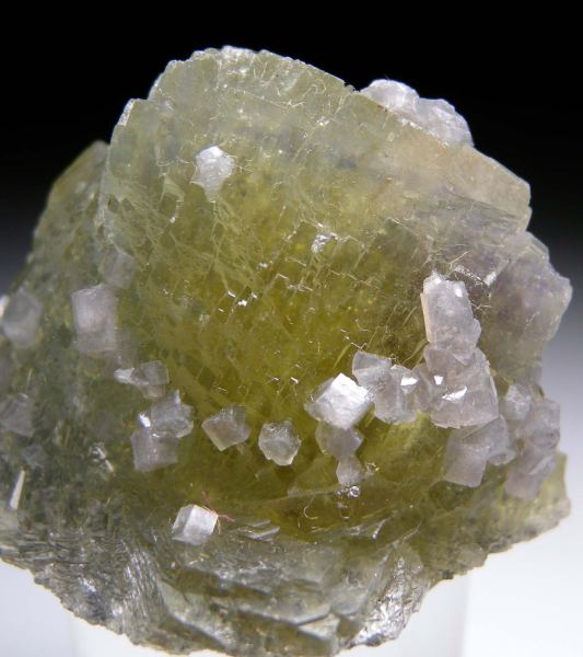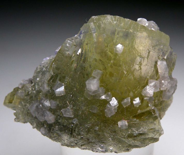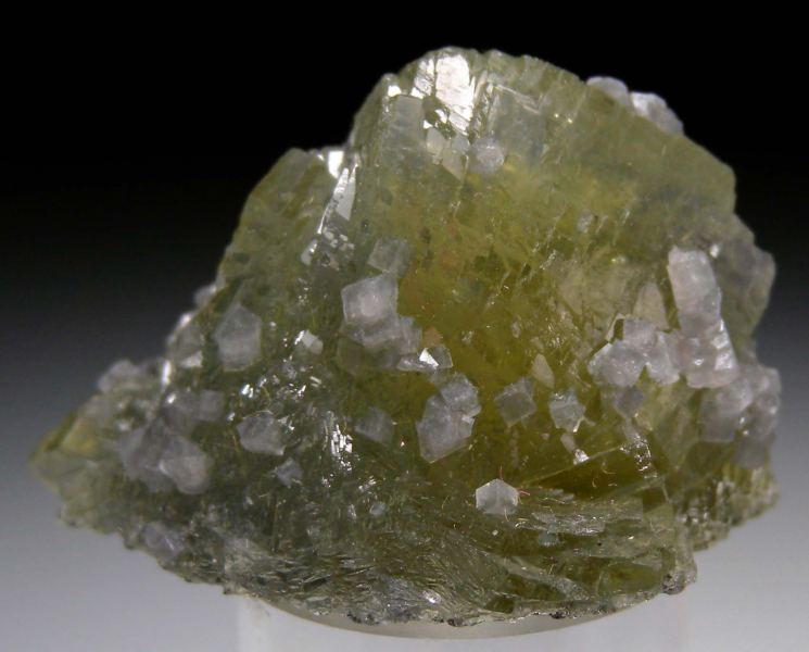 Glassy, translucent Prehnite crystals in tall ridge-like formation (better transluceny than photos depict). Beautiful crystals with bright yellow/green color. The front side is partially covered by Chabazite crystals. The backside has an attached large, paritall Tanzanite crystal. Ex. Mike Keim collection. I have bought hundreds of these over the years, this was one of my keepers.Data last checked on 1st Apr 2026