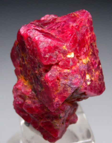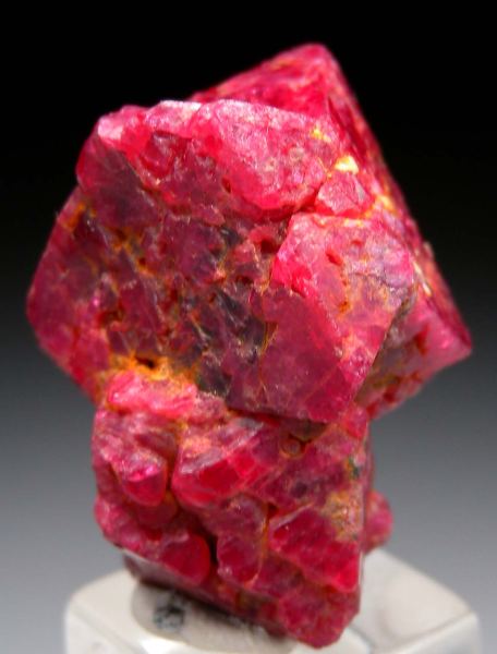Cluster of translucent red Spinel crystals from recent finds in Vietnam. The larger is a spinel-law twinned crystal, the smaller has octahedral form. The color is excellent for the find with a deep pure red.Data last checked on 1st Apr 2026