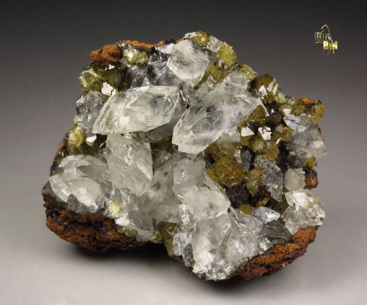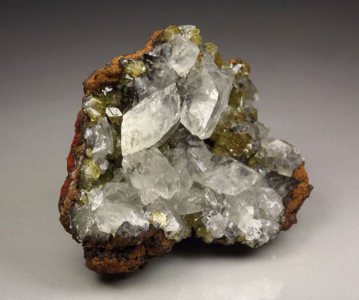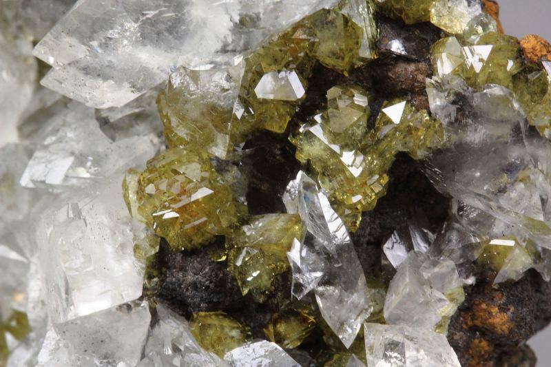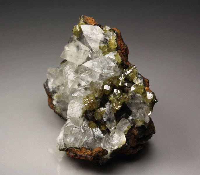 A fascinating specimen of gem adamite crystals with calcite from the famous Ojuela Mine, Mapimi, Mexico. The adamite crystals are razor sharp, very well shaped, with a strong glassy luster. They are with a rich yellow color. The crystals are with fresh appearance and sparkle strongly. The most amazing aspect is the strong transparency and gemminess which they have. Transparent, colorless and sharp calcite crystals add contrast to the piece. In excellent condition., Beauty!, Data last checked on 8th Apr 2026