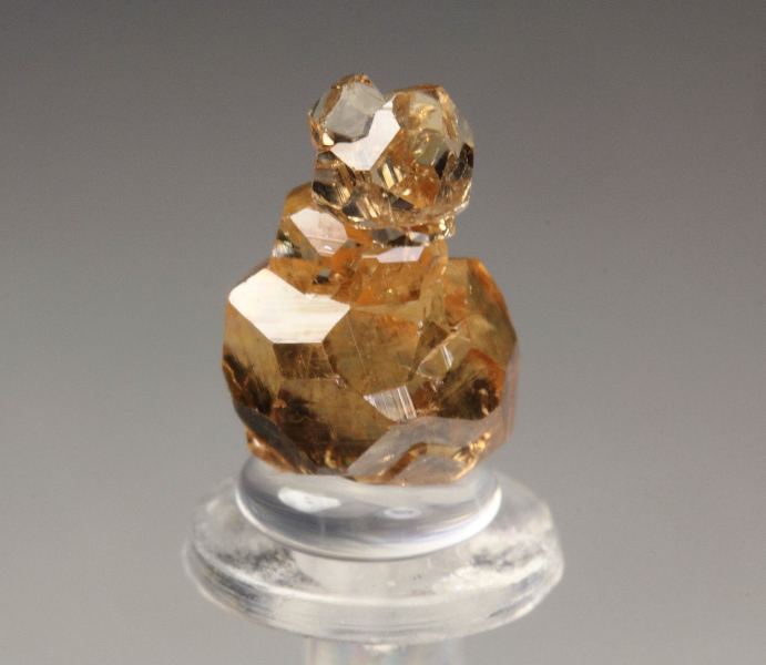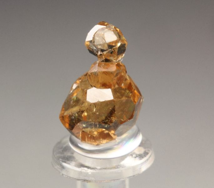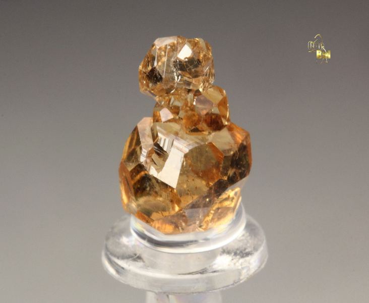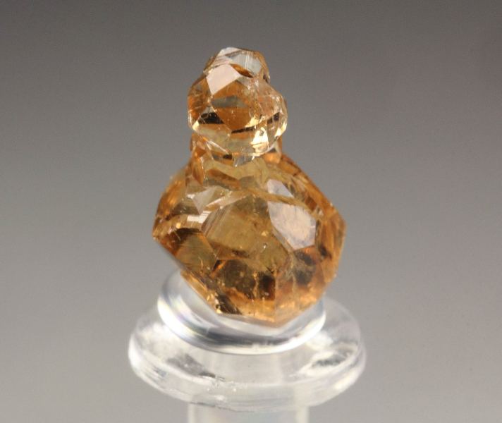 A gorgeous specimen of gem grossular garnet crystals from the famous Jeffrey mine, Quebec, Canada. The crystals are extremely transparent, gem quality with a superb luster and rich orange color. They are up to 5mm with a sharp habit and grow one atop another in a cool stalactite. It displays beautifully all over 360 degree. For references see the 2013 issue of The Mineralogical Record vol. 44, # 4. In excellent condition. On acrylic base., Tremendous small jewel!, Data last checked on 8th Apr 2026