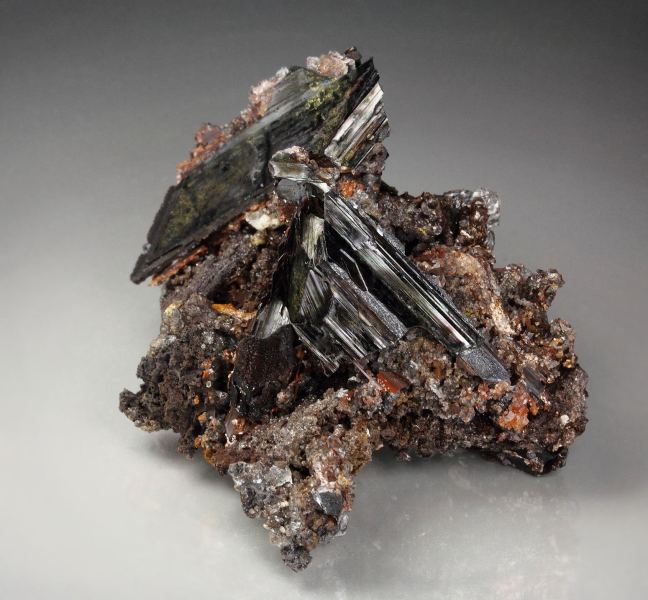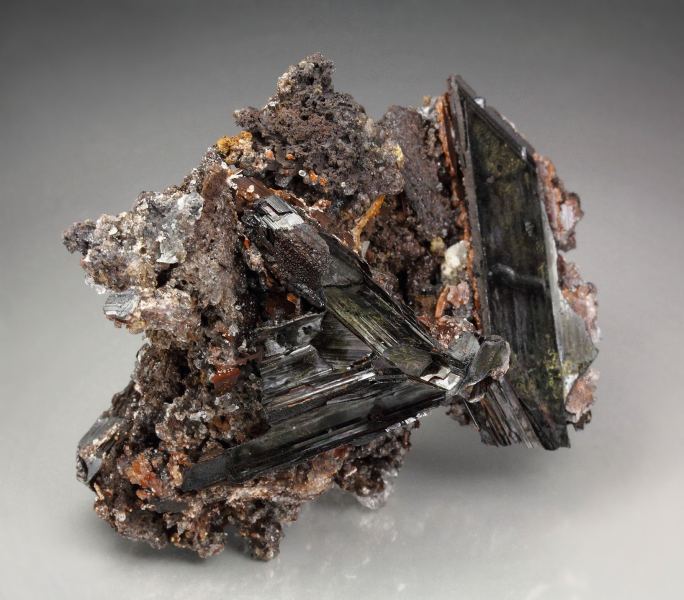 A superb and uncommon goethite pseudomorph/epimorph after selenite from the famous Santa Eulalia District, Chihuahua, Mexico. Epimorph is a type of pseudomorph where a mineral replaces another mineral and the original mineral dissolves, leaving a hollow cast surrounded by the new mineral. It displays black goethite with very sharp shape of the dissolved primary selenite. It is strongly lustrous. On the back side are seen colorless, lenticular calcite crystals. The specimen is complete all over. In very good condition – some small contacts., Exquisite pseudomorph!, Data last checked on 10th Apr 2026