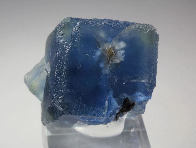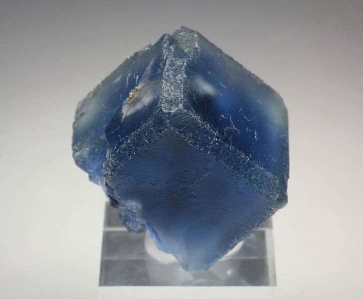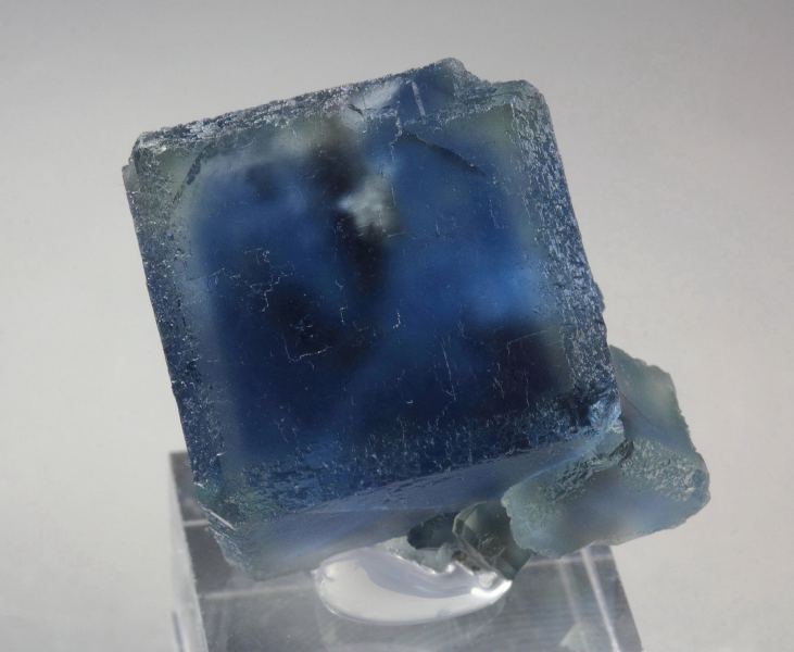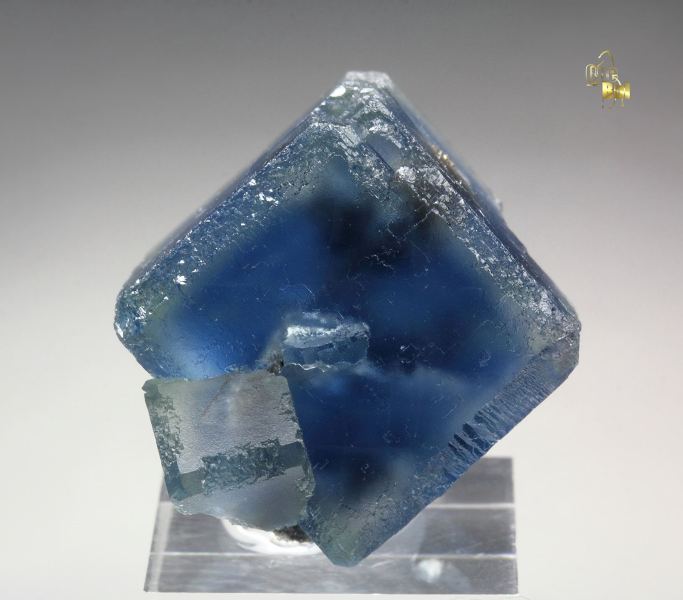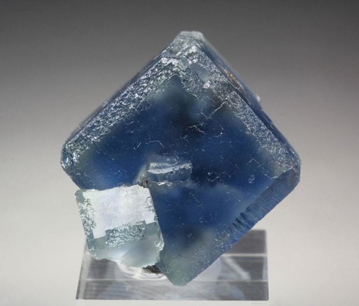 A gorgeous specimen featuring fluorite cubes with rich sea-blue phantoms from Longyan, Fujian, China. The fluorite crystals to 19mm are well shaped and sharp. They have a matt luster. They are transparent and nicely outlined by intense sea-blue phantoms. In good condition – some contacts. On acrylic base., Fascinating!, Data last checked on 24th Apr 2026