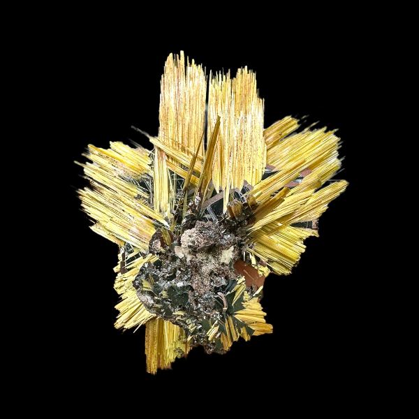 Miniature of aesthetic, geometric epitaxial growth of rutile crystals with hematite. Great luster.;Data last checked on 28th Apr 2026