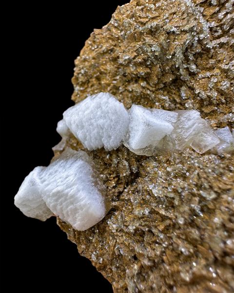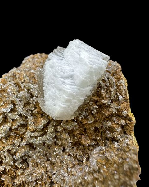 Interesting specimen of white, contrastive calcite crystal growing on brownish older generation of calcite. Unusual location.Data last checked on 28th Apr 2026