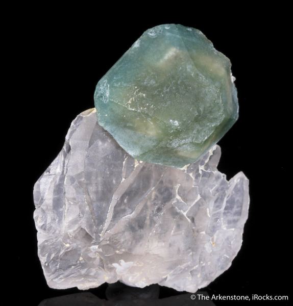 This is a Hydroxylapatite on Quartz from Sapo Mine, Ferruginha, Conselheiro Pena, Minas Gerais, Brazil. A tabular, sharp, almost hexagonal "Carbonate-fluorapatite" (now reclassified as hydroxylapatite) crystal perched on a cluster of flat Quartz crystals from the finds here in the end-1990s of a strange form of apatite that at first was called by at least 3 different names; and many said might even be a new apatite group species at the time, because of the combination of strange shape and color!Data last checked on 23rd Feb 2026