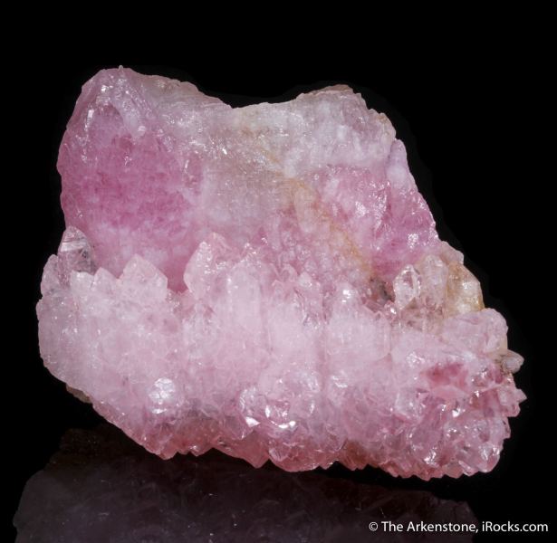 This is a Rose Quartz from Ilha Claim, Taquaral, Itinga, Minas Gerais, Brazil. A vibrant pink, "fence" composed of doubly terminated, Rose Quartz crystals serves as the foreground for this piece with a tight grouping of larger, prominent Rose Quartz in the background.Data last checked on 28th Jan 2026 - specimen may no longer be available