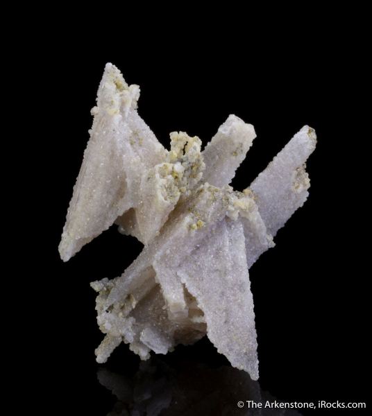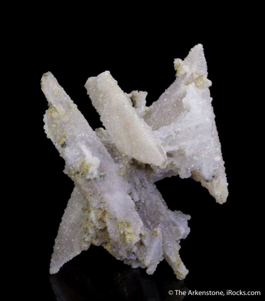 This is a Cerussite with Anglesite coating from Broken Hill, New South Wales, Australia. Classic, intergrown V-twins of pearly-white cerussite, to 4 cm on an edge, are covered by a sparkling crystal druse of colorless anglesite.Data last checked on 1st Feb 2026 - specimen may no longer be available