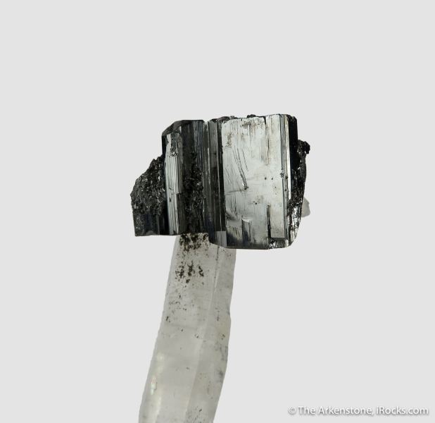 This is a Bournonite on Quartz from Yaogangxian Mine, Yizhang Co., Chenzhou, Hunan, China. It's hard to imagine a more interesting and appealing Bournonite than this crystal perched atop these two Quartz crystals.Data last checked on 22nd Jan 2026