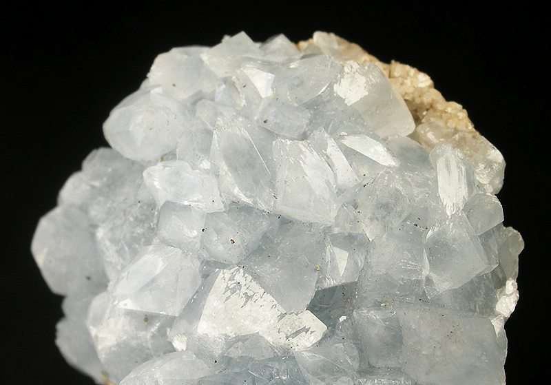This is a Celestine from Wessels Mine, Kalahari, South Africa. Emplaced on matrix is a nest of glassy and translucent, pastel-blue crystals, of celestine, to 1 cm in length.Data last checked on 30th Jan 2026