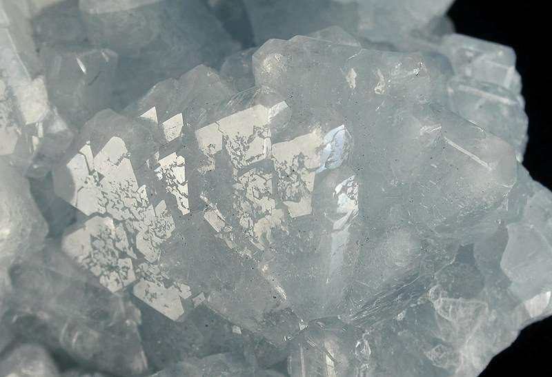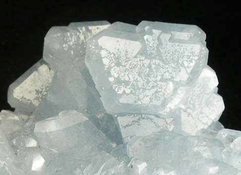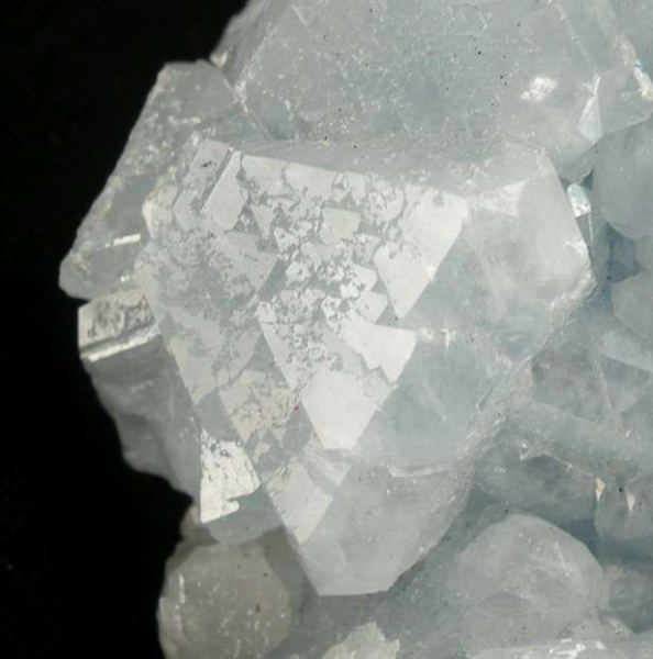 This is a Celestine from Wessels Mine, Kalahari, South Africa. A thin crust of matrix gives way to a plate of angular, chisel-headed crystals, to 2 cm across, of glassy and translucent, pastel-blue celestine.Data last checked on 28th Jan 2026