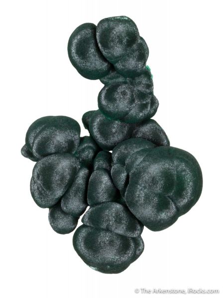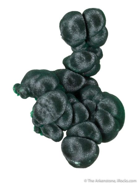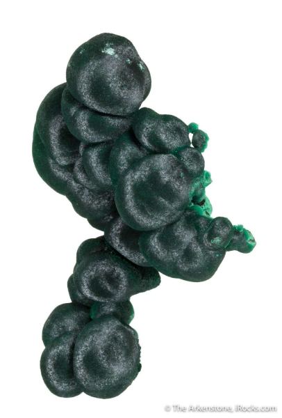 This is a Malachite from Shilu Mine, Yangchun Co., Guangdong Prov., China. This is a particularly elegant, floating specimen of malachite: Rounded botryoids of satiny-lustered, dark forest-green malachite to 3.3 cm across, are slightly intergrown, giving the specimen a lovely sculptural form.Data last checked on 7th Feb 2026 - specimen may no longer be available