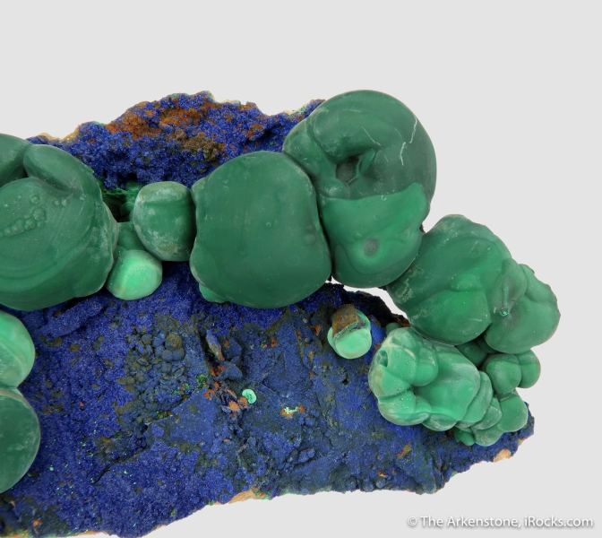 This is a Malachite on Azurite from Liufengshan Mine, Anhui Province, China. Outstanding combination piece featuring primary Malachite on Azurite, from China.Data last checked on 22nd Jan 2026