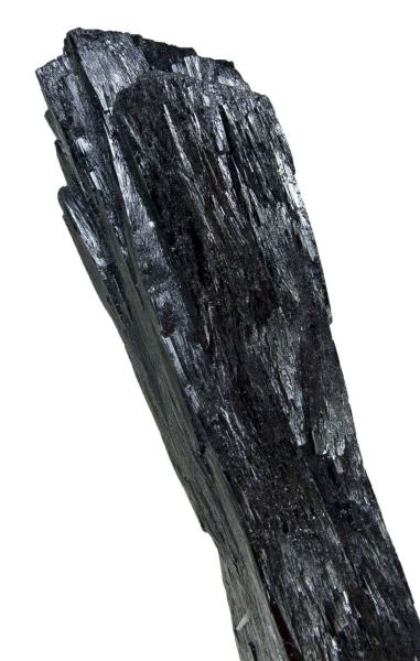 This is a Ilvaite from Huanggangliang mine, Keshiketeng Qi, Chifeng city, Inner Mongolia, China. A large, doubly-terminated, highly lustrous, jet-black crystal of ilvaite, 12.3 cm in length, is bisected at one end by another doubly-terminated ilvaite crystal, measuring 10.3 cm in length.Data last checked on 20th Jan 2026