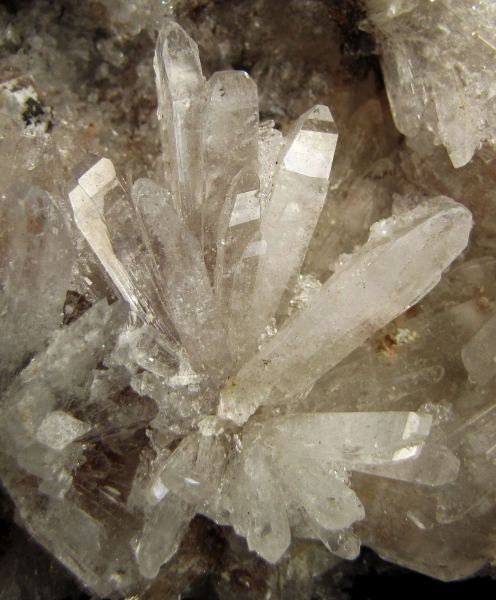 This is a Creedite from Qinglong (Dachang), Qinglong Co., Guizhou Province, China. This matrix specimen has rosettes of bright, very glassy and gemmy creedite crystals to 2.75 cm in length.Data last checked on 20th Jan 2026