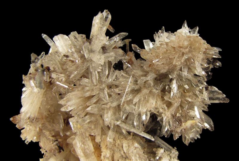 This is a Creedite from Qinglong (Dachang), Qinglong Co., Guizhou Province, China. Bright, glassy and gemmy, colorless crystals of creedite, to 2.0 cm in length abound on the upper portions of this matrix.Data last checked on 5th Feb 2026 - specimen may no longer be available