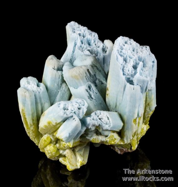 This is a Plumbogummite ps Pyromorphite from Yangshuo Mine, Yangshuo Co., Guilin Pref., Guangxi Zhuang, China. Standing vertically on its own is a fine specimen of plumbogummite after pyromorphite with large and fat crystals to 5 cm in length, and exhibiting a superb sky blue color.Data last checked on 22nd Jan 2026 - specimen may no longer be available
