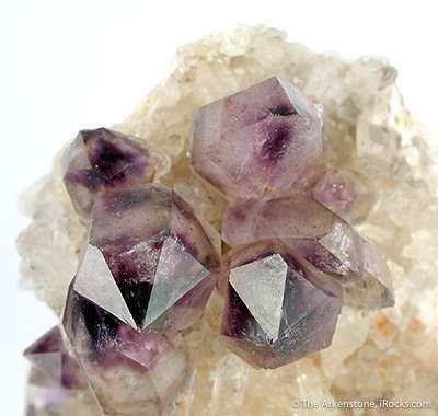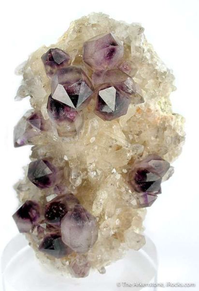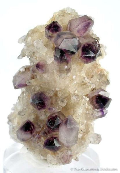 This is a Amethyst on Quartz from Orange River, Namibia. This matrix specimen features about a dozen rather equant, glassy amethyst crystals, to 2.5 cm across.Data last checked on 23rd Feb 2026 - specimen may no longer be available