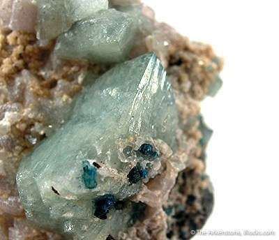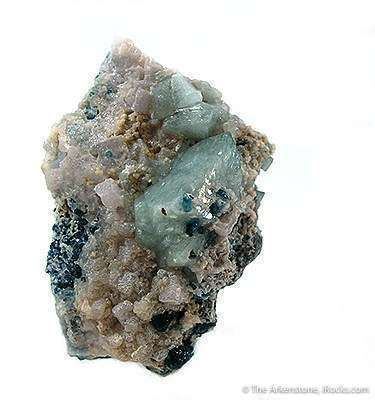 This is a Wardite & Goyazite on Lazulite from Rapid Creek, Yukon, Canada. This is from a small pocket of wardites hit adjacent to and overlapping with the goyazite zone, and seemingly of unique chemistry which has resulted in a sea foam green color to the wardite, making them MUCH prettier than normal!Data last checked on 25th Feb 2026 - specimen may no longer be available