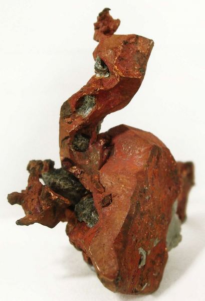 This is a Copper from Central Mine, Keweenaw County, Michigan, USA. Perched aesthetically on the legs of two smaller crystals is a superbly formed, doubly terminated, 2 cm tall crystal of slightly lustrous, richly colored copper.From: The Arkenstone