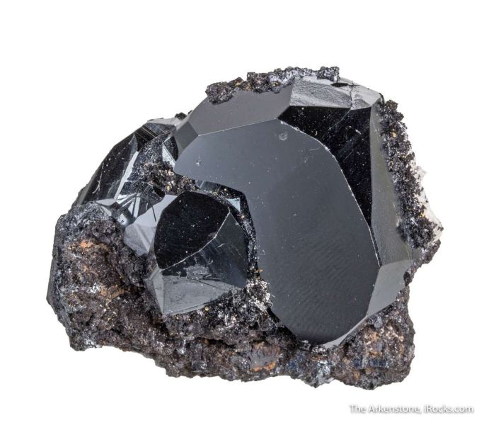 This is a Hematite with Hausmannite from N'chwaning Mines, Kalahari Mang. Field, South Africa. Superb, mirror bright, jet-black hematite crystals to 3 cm across are emplaced on a massive hematite matrix.Data last checked on 27th Feb 2026