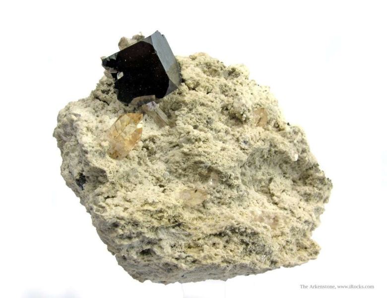 This is a Bixbyite and Topaz from Thomas Range, Juab County, Utah, USA. Splendent, jet-black, .95 cm crystal of Bixbyite with gemmy Topaz, on a contrasting rhyolite matrix.Data last checked on 16th Jan 2026