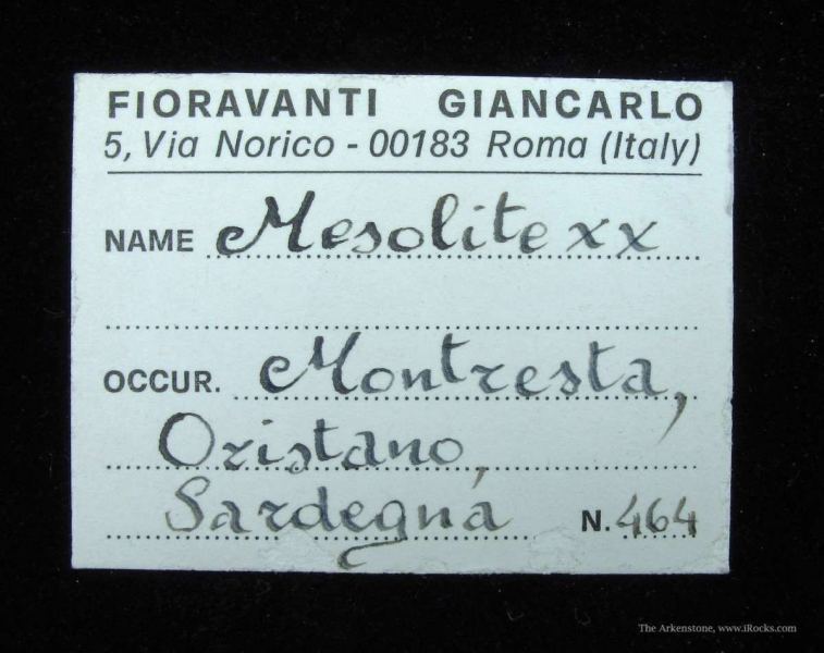 This is a Mesolite from Montresta, Oristano Province, Sardinia, Italy. Superb, incredibly rich specimen of sparkling crystals of Mesolite from Sardinia.Data last checked on 28th Jan 2026 - specimen may no longer be available