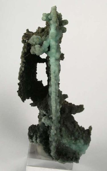 This is a Gibbsite from Xianghualing polymetallic ore field, Chenzhou Prefecture, Hunan Province, China. Thin, lightweight, box-work septae, is the host for botryoidal aggregates of green gibbsite, to .5 cm across.Data last checked on 11th Feb 2026 - specimen may no longer be available