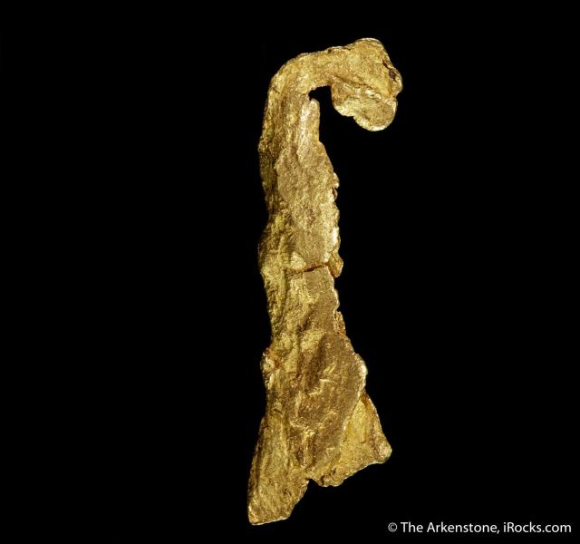 This is a Gold from Kilometer 88 District, W. of Santa Elena, Bolivar, Venezuela. A strange, elongated, rather large single crystal of gold, from these famous finds.Data last checked on 28th Jan 2026
