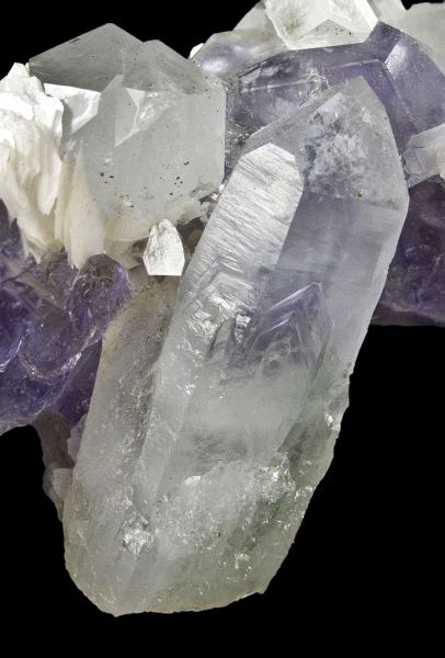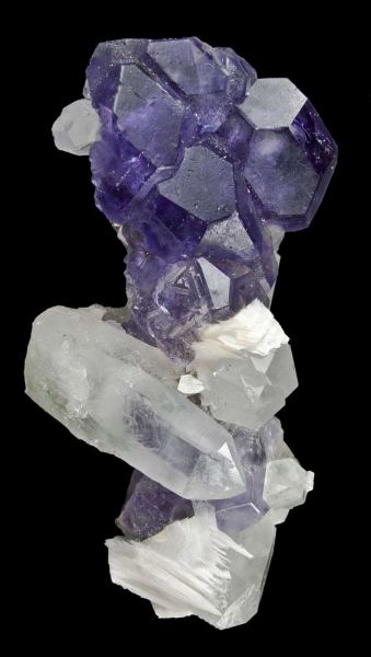 This is a Fluorite With Quartz and Calcite from Piaotang Mine, Xihuashan, Dayu Co., Jiangxi Province, China. This unusual specimen is a sculptural arrangement of gem fluorite, sharp quartz, and elegant bladed calcite from a locality that most westerners have not heard of, and which is often confused with material from the Yaogangxian Mine in Hunan Province.Data last checked on 7th Feb 2026 - specimen may no longer be available