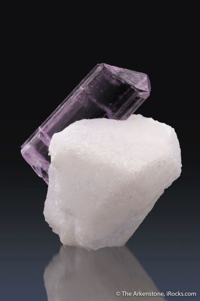 This is a Scapolite on Feldspar from Koksha Valley, Badakhshan, Afghanistan. An unusual specimen with a totally 100% gem crystal of lavender/amethyst-colored scapolite, perched on the edge of a rough feldspar crystal.Data last checked on 22nd Jan 2026 - specimen may no longer be available