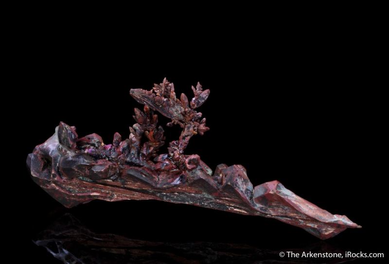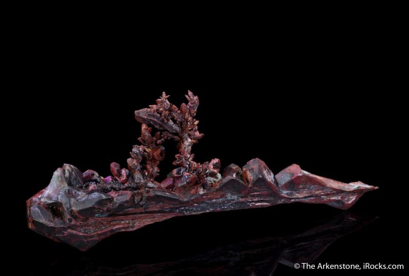 This is a Copper (twin) from Itauz Mine, Dzhezkazgan, Kazakhstan. This is a superb, spinel twin of copper, enhanced even more by the nearly total inclusion of cuprite, resulting in an overall brownish red color on the display side.Data last checked on 28th Jan 2026 - specimen may no longer be available