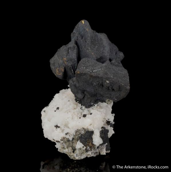 This is a Chalcocite on Chalcopyrite from Cobre Mine, Concepcion de Oro, Zacatecas, Mexico. Chalcocite (Cu2S) coats a large, dynamic cluster of Chalcopyrite (CuFeS2) perched on a mass of hackly Quartz.Data last checked on 28th Jan 2026 - specimen may no longer be available
